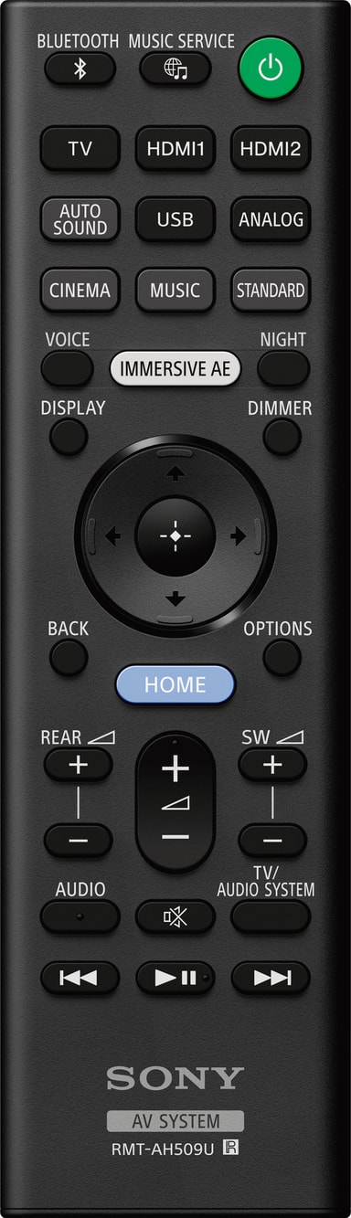 Max 7.1.2 surroundljud Med Sonys vertikala surroundmotor kan du njuta av spänningen i moderna ljudformat som Dolby Atmos och DTS: X i en enda enhet. Tack vare de fem X-balanserade fronthögtalarna, två högtalare och två strålhögtalare som återger vertikalt ljud får du en känsla av att ljudet kommer från alla runt dig, inte bara framsidan. Den inbyggda dubbla subwoofern ger djup bas för en övergripande utmärkt ljudupplevelse.