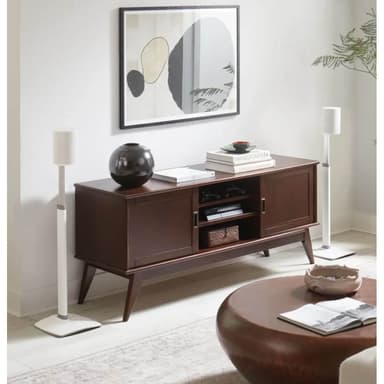 Perfekt för användning i alla uppsättningar, oavsett om det är hemmabio, bakgrundsmusik eller stereolyssning. För ett kabelfritt utseende, säkrar och döljer vår Press Fit-kabelhanteringsteknik sladdar på baksidan av stativet. Detta eleganta stativ monteras enkelt ihop på 15 minuter med en stjärnskruvmejsel och hjälper dig att få det perfekta ljudet för ditt hem.