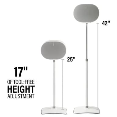 SANUS höjdjusterbara högtalarstativ designat för Sonos Era 300 erbjuder 40cm av enkel skjuthöjdsjustering, kabelhantering och en elegant design. Detta justerbara stativ kommer säkerligen att leverera optimal ljudprestanda oavsett dina lyssningsbehov. Tillverkat av slitstarkt stål och extruderad aluminium motstår det inte bara slitage, utan kompletterar också perfekt estetiken hos Sonos Era 300 för en elegant, sömlös look.