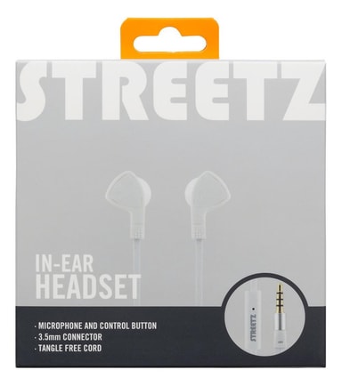 E110 In-ear headset, 1-button remote, 3.5mm, mic, white