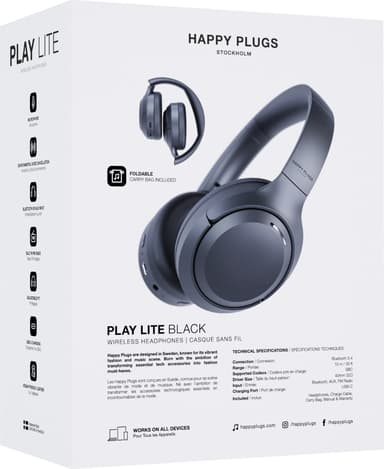 Happy Plugs Play Lite trådlösa around ear-hörlurar (svarta)