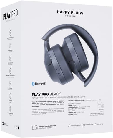 Happy Plugs Play Pro trådlösa around ear-hörlurar (svarta)