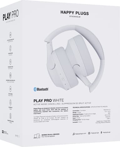 Happy Plugs Play Pro trådlösa around ear-hörlurar (vita)