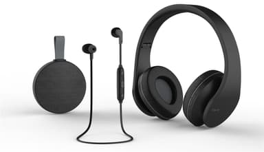 I detta kit får du alla trådlösa ljudprodukter du behöver! Perfekt för alla tillfällen! I setet ingår trådlösa On-Ear hörlurar, trådlösa sporthörlurar och en trådlös högtalare. Med denna produkttrio kan du lyssna på musik i alla lägen. Stoppa in sportlurarna och ta en springtur, sätt på dig on-ear hörlurarna när du sitter på bussen eller varför inte ta med den smidiga högtalaren till stranden!