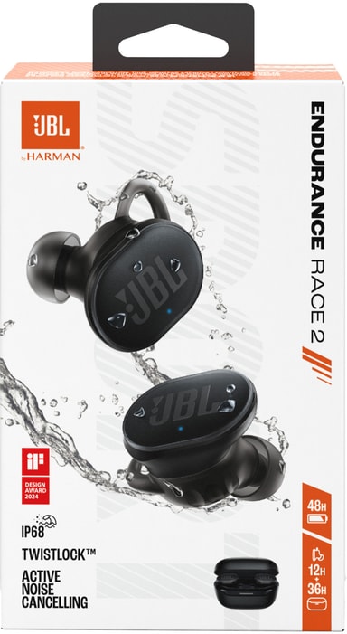 JBL Endurance Race 2 true wireless in-ear-hörlurar kommer med ANC, 4-mic, sport- och avkopplingslägen. Med 48 timmars batteritid, sömlös flerpunktsanslutning och IP68 vattentäthet är de perfekta för träning och daglig användning.Läs mer om produkten