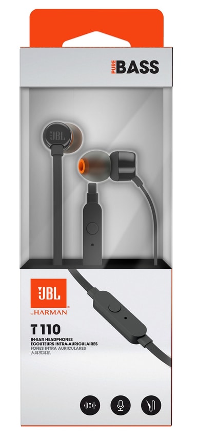 JBL T110 in-ear hörlurar med kraftfull, starkt basljud kan du enkelt ta med dig var du än ska. 1 knapps mic/fjärrkontroll gör att du kan kontrollera musiken så väl som samtalen.Läs mer om produkten