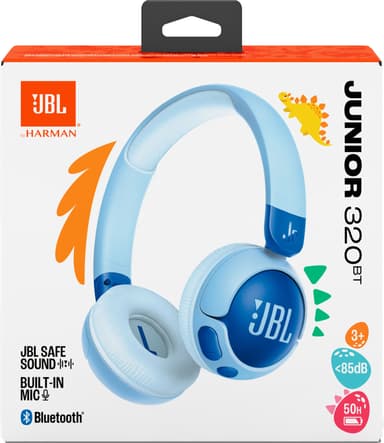 Barnvänliga JBL Junior 320BT on ear-hörlurar har JBL Safe Sound med, 50 timmars batteritid och snabb Bluetooth 5.3-anslutning. Föräldrakontroll via JBL-appen tillåter volymbegränsningar och användningsövervakning.Läs mer om produkten
