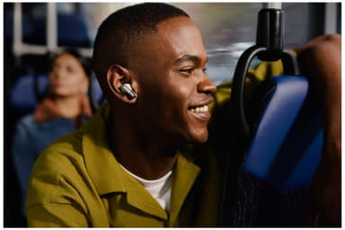 Tysta omgivningen helt eller välj hur mycket omgivningsljud som ska höras. Med fyra brusregistrerande mikrofoner anpassas ljudet automatiskt efter omgivningen i realtid.