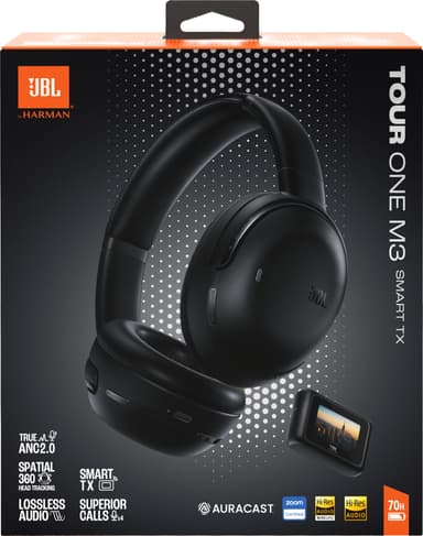 Använd JBL Smart Tx för att ansluta till nästan alla ljudkällor och lyft din trådlösa ljudupplevelse. Eller använd USB-C-kabeln för digitala källor som din telefon, surfplatta eller bärbara dator. Du kan också ansluta analoga källor med hjälp av 3,5 mm-ljudkontakten. Det inkluderar underhållningssystemet ombord på de flesta flygplan, din TV eller dator. Och med 18 timmars batteritid* tar du dig igenom även den längsta flygresan.