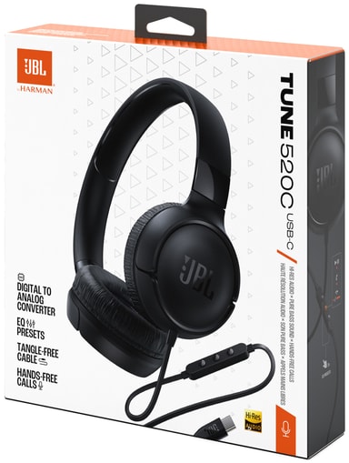 JBL Tune 520 USB-C trådbundna on-ear-hörlurar (svarta)