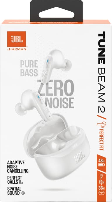 JBL Tune Beam 2 True Wireless in ear-hörlurar erbjuder fantastiskt ljud och klarhet i rösten med Active Noise Cancelling, 6 mikrofoner och speltid på upp till 48 timmar. IP54-klassificering gör dem idealiska för utomhusbruk.Läs mer om produkten