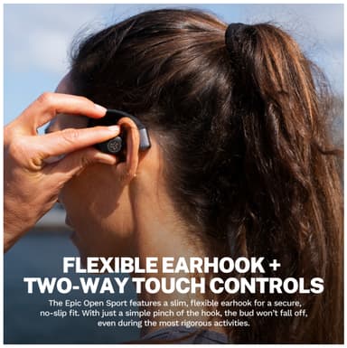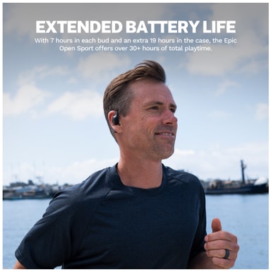JLab Epic Open Sport trådlösa in ear-hörlurar levererar fantastiskt ljud med 30 timmars batteritid, 3 ljudlägen, IP55-klassning.Läs mer om produkten