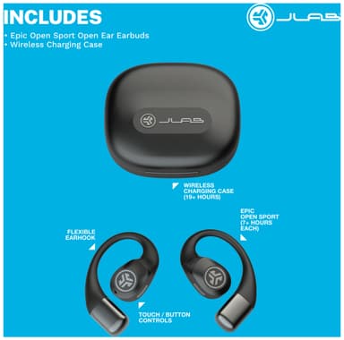JLab Epic Open Sport trådlösa in ear-hörlurar (svarta)
