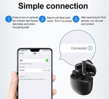 Pro 9 TW In-Ear hörlurar med touchkontroll, Svart
