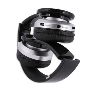 Trådlösa stereohörlurar från Rebeltec. Högtalarna ger ifrån sig ett kristallklart ljud och är hopfällbara för att smidigt kunna förvaras när de inte används eller när du är på resande fot.