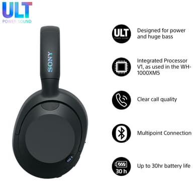 Det kraftfulla ljudet du hör drivs av vår högpresterande Integrated Processor V1 och produceras genom Sonys stora, högkvalitativa 40 mm drivrutiner. ULT WEAR-hörlurarna bygger på årtionden av ljudexpertis från Sony och har utformats för de som är besatta av baslinjen.