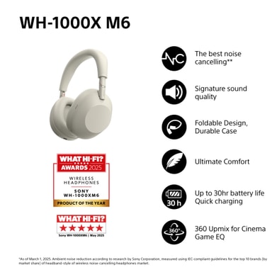• Sony WH-1000XM6 trådlösa around-ear-hörlurar (platinum silver)