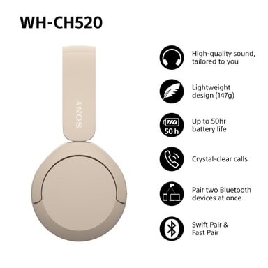 Sony WH-CH520 trådlösa on-ear hörlurar (beige)