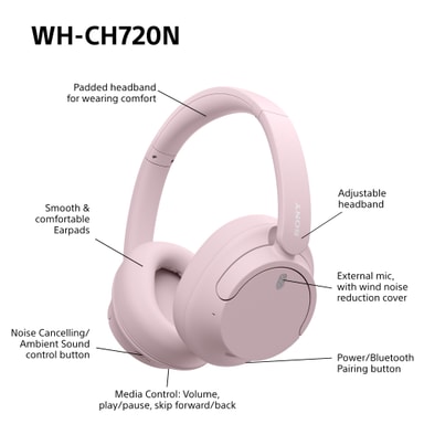 Med V1-processorn från Sonys prisbelönta WH-1000XM5 dämpar WH-CH720N omgivande ljud.