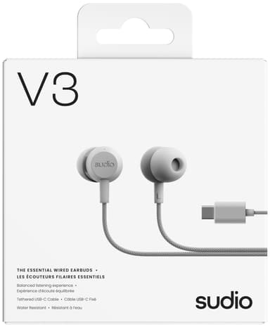 Sudio V3 trådbundna hörlurar har 10 mm-element, USB-C-kabelanslutning, inbyggda kontroller, kompatibilitet med flera plattformar och en inbyggd mikrofon.Läs mer om produkten