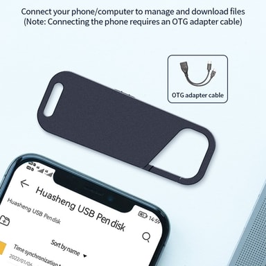 Lätt att överföra inspelningar: Bekvämt att överföra inspelningarna till en dator/mobiltelefon för att spela upp, radera och byta namn på inspelningsfilerna