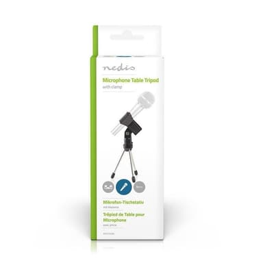 Bordsstativ med 3 fällbara metallben och mikrofon klämma.