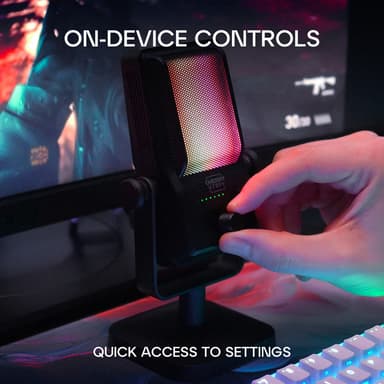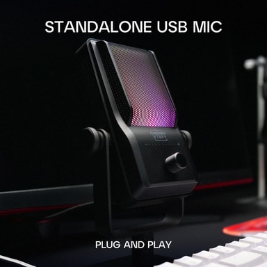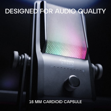 Få bättre inspelningsljud med Cherry Xtrfy Ngale R USB mikrofon med smart brusreducering, dubbla inspelningslägen med ett low cut-filter, plug-and-play-inställning och dynamisk RGB-belysning.Läs mer om produkten