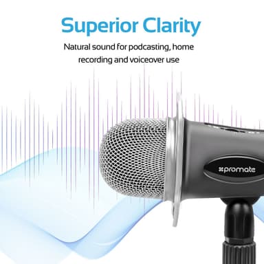 Promate TWEETER profesionell 3,5mm kondensormikrofon med volymkontroll med stativLäs mer om produkten