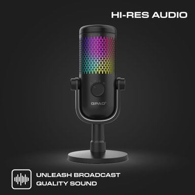 Höj din ljudupplevelse med QPAD Omnibeam Stream Pro-mikrofonen som har stöd för Hi-Res-ljud, fyra olika ljudupptagningmönster, dynamisk RGB-belysning och en knacka-för-att-tysta-funktion.Läs mer om produkten
