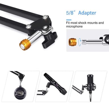 Detta mikrofonstativkitetär en perfekt grund för att underlätta ditt arbete med mikrofonen. Kitet innehåller en bordsarm och ett shock mount. Det kommer en gängadapter med som gör att din Blue Yeti eller Snow Ball mikrofon kan kopplas direkt på bordsstativet. Shockmountetfungerar inte med Blue Yeti eller Snow Ball mikrofonerna. Allting är redo och kitet tar mindre än 2 minuter att installera på ditt bord.