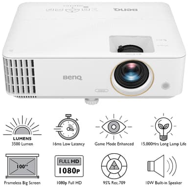 Gamingprojektorn BenQ TH585P är redo för dina spelbehov med ljusstyrka på 3500 ANSI lumen, FullHD-upplösning, 16 ms låg latens och upp till 100-tums bildprojektion. LampSave-läget ger upp till 15 000 timmars lamplivslängd.Läs mer om produkten