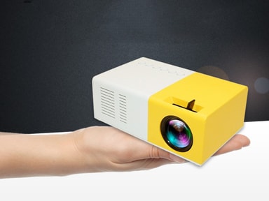 Liten och portabel med stor bild: Med en projektor kan du visa upp material i storbild. Denna projektor är liten och portabel och inte mycket större än en vanlig mobil.