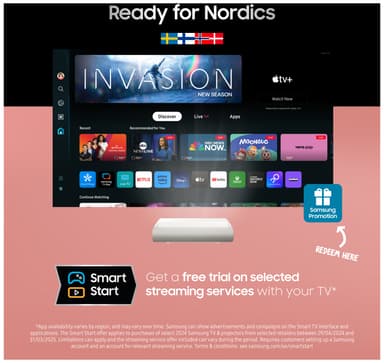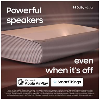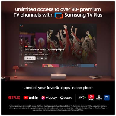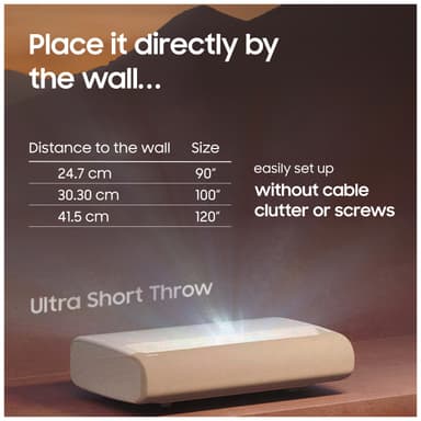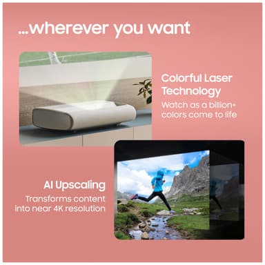 Förlora dig själv i den uppslukande videon och ljudet från Samsung LPU7D Premiere Smart 4K UHD-laserprojektor med ljus, högupplöst bild, Ultra Short Throw-projektion, Smart TV-upplevelse och fantastiska spelfunktioner.Läs mer om produkten