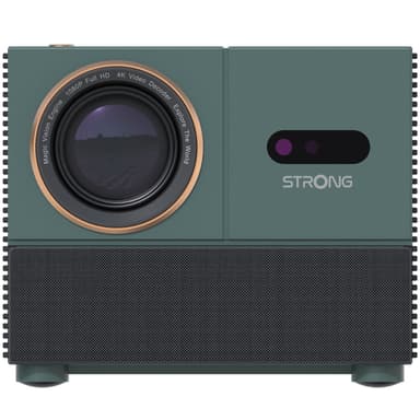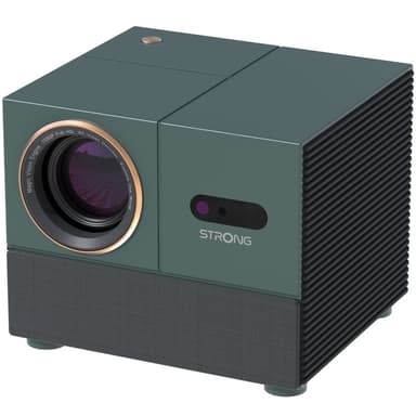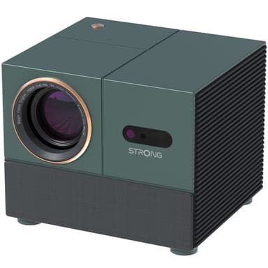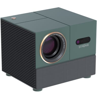 MIRA 1 från STRONG, en elegant och mångsidig videoprojektor designad för att förstärka alla rum med sin eleganta grangröna finish