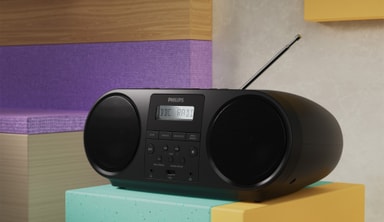 Philips Z6000 boombox kombinerar CD-spelare, DAB+/FM-radio och högtalare i en enhet. Den stöder även AUX-ingång, USB-minne och Bluetooth-streaming tillsammans med Auracast.Läs mer om produkten