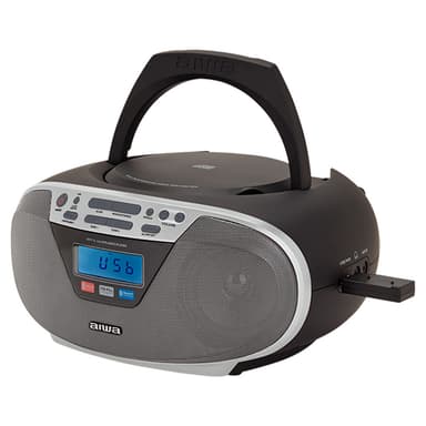 AIWA BBTU-400 BoomBox är en all-in-one musikmaskin med modern estetik och flera funktioner. Högtalare med hög dynamisk räckvidd ger klar ljud med utökad bas och diskant. Har Bluetooth 5.0, toppladdad CD-spelare, FM PLL-radio med 40 förinställningar, stor LCD-skärm och väckarklocka. USB-MP3 spelare stöder 64GB. AC/DC driven.