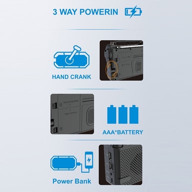 • Emergency AM FM-radio Bluetooth spelare Handvevgenerator PowerBank