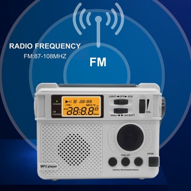 1195BT Outdoor Emergency AM FM-radio Bluetooth-kompatibel spelare handvevgenerator med Power Bank-funktion【Multifunktionell nödradio】 Kombinerar AM/FM-radio, Bluetooth-kompatibel högtalare, MP3-spelare, LED-ficklampa och powerbank i en kompakt enhet.Läs mer om produkten