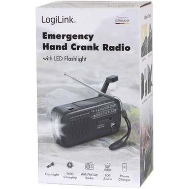 LogiLink Dynamo handvevsradio med solpanel och ficklampa