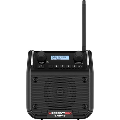 PerfectPro DABPRO Byggarbetsradio DAB+, FM AUX, Bluetooth Stötsäker, uppladdningsbart SvartDAB+ digitalradio-mottagning · FM-mottagning · 5 kanalminnen för FM · Aux-ingång för extern MP3-spelare · Bluetooth-mottagare för musikstreamingLäs mer om produkten