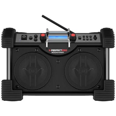 PerfectPro RockHart Byggarbetsradio DAB+, FM AUX, Bluetooth, DAB+, NFC, FM, USB Batteri-laddningsfunktion, StänkvattensFM-mottagning med RDS-sändarinformation DAB+ digitalradio-mottagning · 6 kanalminnen för UKW och DAB+ NFC och Bluetooth® PairingLäs mer om produkten