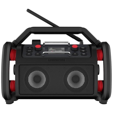 PerfectPro RockPro Byggarbetsradio DAB+, FM AUX, Bluetooth, USB Batteri-laddningsfunktion, Stänkvattenskyddad, Dammtät,DAB+ digitalradio RDS · UKW 3 x 40 kanalminnen med zapp-funktion Bluetooth® 5.0 · USB-spelare (MP3, WMA, FLAC, AAC, Apple Lossless,Läs mer om produkten