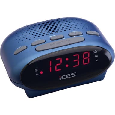 ICES ICR-210 Klockradio FM BlåFM-radio · LCD-display · Autostopp · upprepning · teleskopantenn.FM-radio med två larm larm med radio eller larm snooze-funktion och insomningstimer reservbatteri vid strömavbrott (ingår ej)Läs mer om produkten