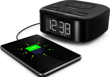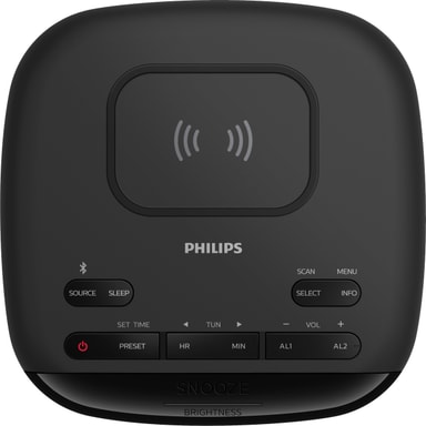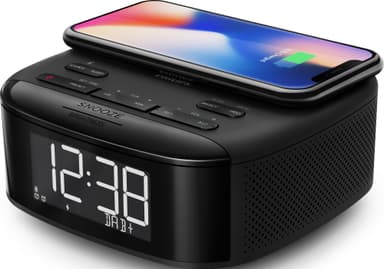 Philips väckarklocka med radio TAR7705/10 ger dig kristallklar digital radio, låter dig spela din egen spellista via Bluetooth-anslutning eller använda den inbyggda trådlösa Qi-laddaren som laddar din telefon utan krångel.Läs mer om produkten