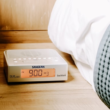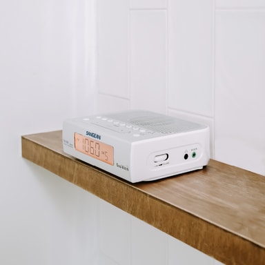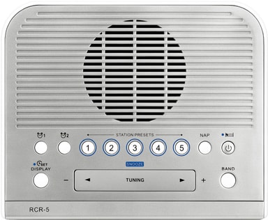 Sangean RCR-5 Klockradio FM, AM AUX Silver, VitFM-/MV-radio med 10 kanalplatser · Dimmbar LCD-skärm med gul bakgrundsbelysning · Vilolägesfunktion · Inställbart korttidsalarm (NAP-timer i 10-minuterssteg) · Insomningsfunktion · Datumvisning ·Läs mer om produkten
