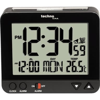 Techno Line WT 195 DCF Väckarklocka Svart Larmtider 1
