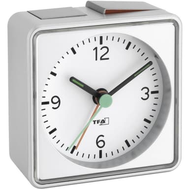 TFA Dostmann 60.1013.54 Kvarts Väckarklocka Silver Larmtider 1 Flourescerande VisareTyst urverk · Ökande larm · BakgrundsbelysningLäs mer om produkten