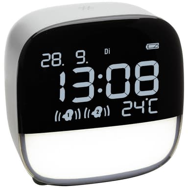 • Väckarklocka med 2 larmtider, 3 volym- och snooze-funktionIntegrerat batteri för laddningSteglöst dimbar nattlampa med automatisk avstängningsfunktion
