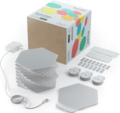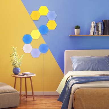 Skapa ljuskonst med 16 miljoner färger med hjälp av Nanoleaf Shapes Hexagons Starter Kit (15-pack). Det ger dig oändliga möjligheter att designa din hembelysning tack vare multitouchkontroll, musiksynkronisering och Nanoleaf-appen.Läs mer om produkten
