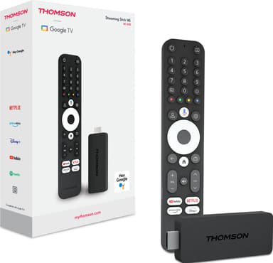 Höj din TV-upplevelse med Thomson 4K UHD-streamingsticka som erbjuder 4K UHD-upplösning, HDR-stöd och Google TV drivet av det senaste Android med tillgång till otaliga streamingtjänster.Läs mer om produkten
